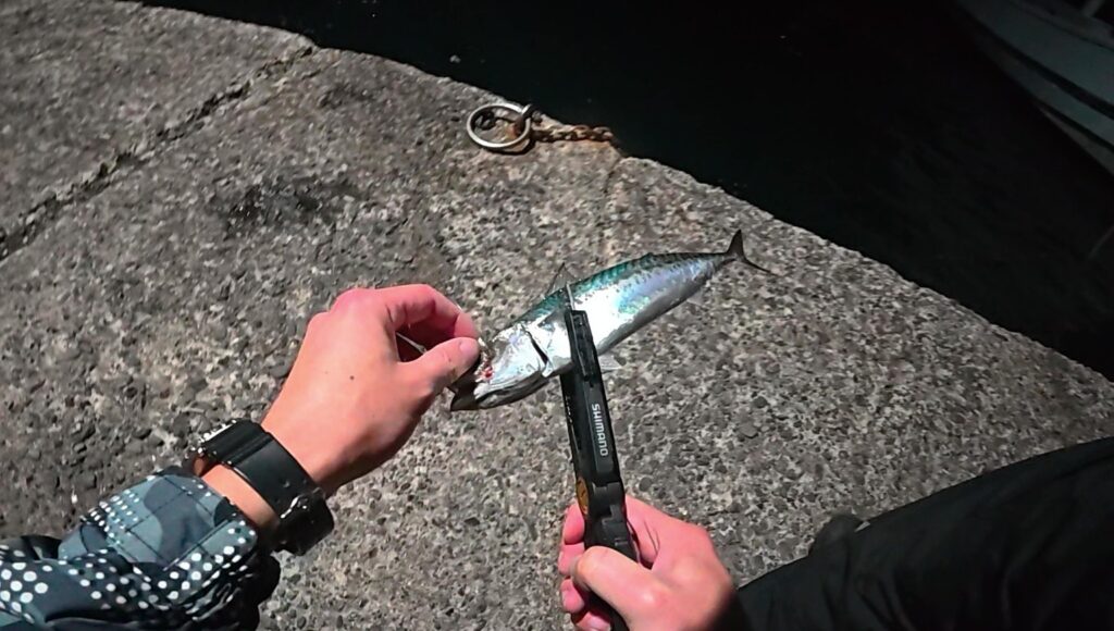 釣れていたのは30㎝前後のサバ。