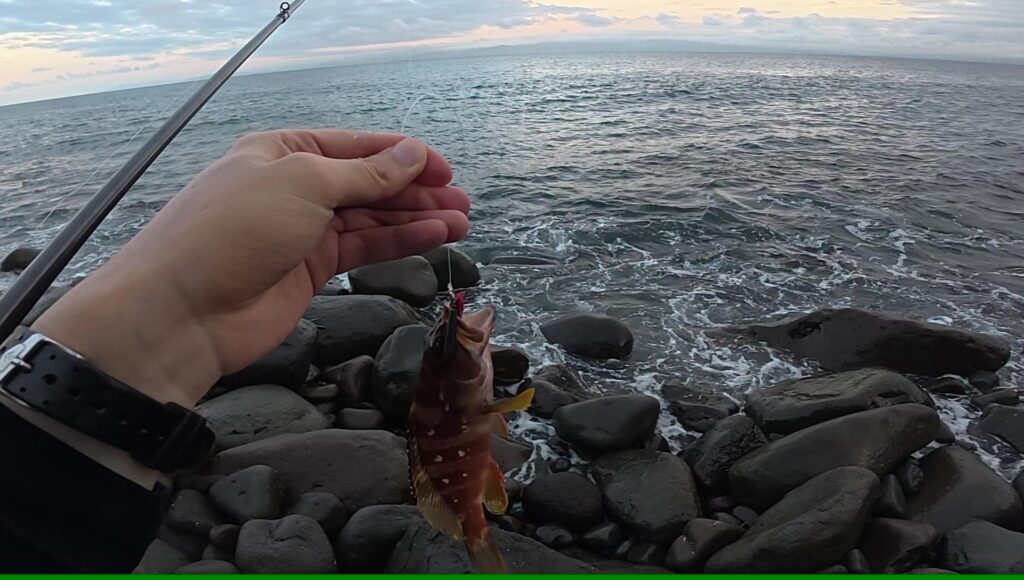 30分くらい続けてみたが何もなし。釣れる気がしないので再び根魚釣りに戻る。