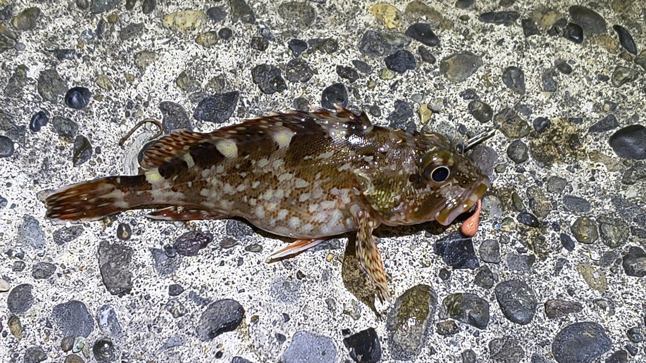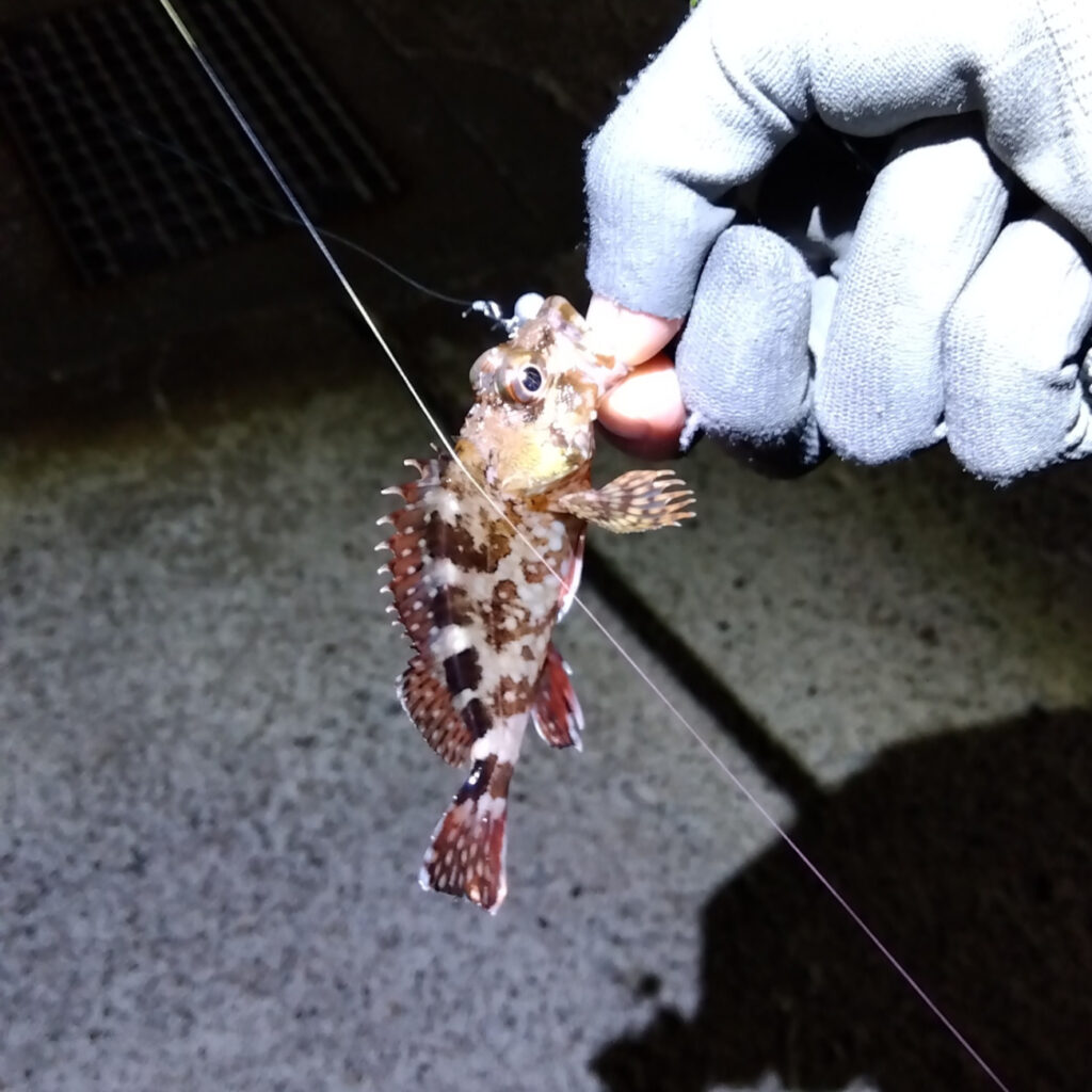 カサゴは簡単に釣れたが、残念ながら表層付近にいるメバルはフェザージグには反応しなかった。