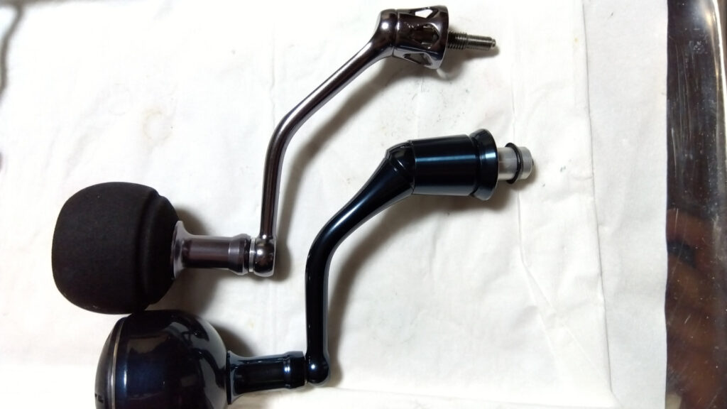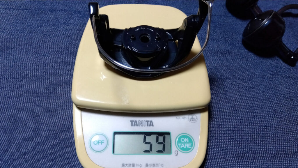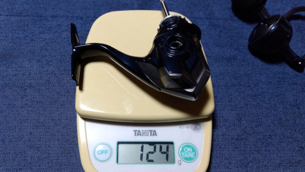 スペックの重量も5gしか変わらないので恐らくはスプールとハンドルノブの重量分の差しかない。