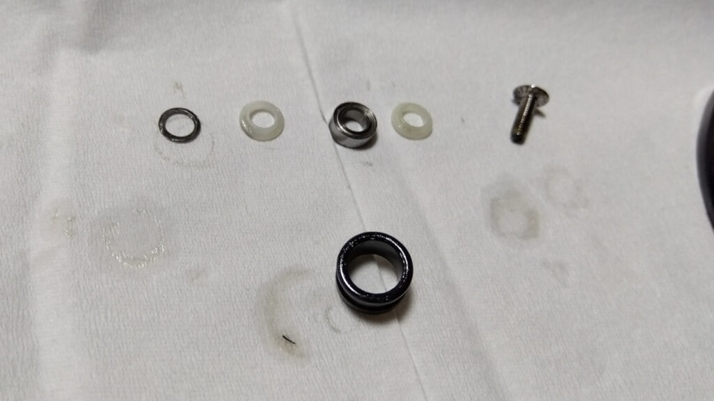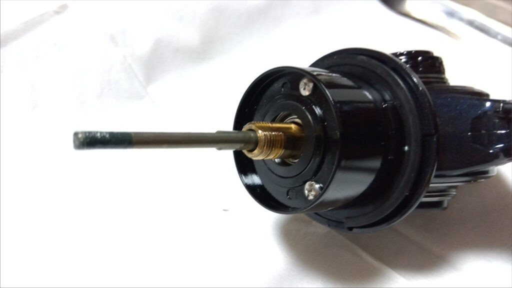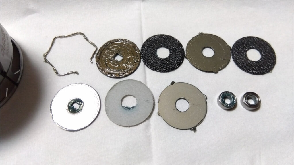 ここにはベアリングが2つ入っていて、ドラグワッシャーはカーボンとフェルトの2種類ともが組み込まれている。