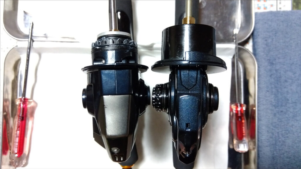 つまり、このリールは構造的にはシマノのストラディックなんかと同じ「プラスチックボディ&金属製脚つき蓋」となっているわけだ。