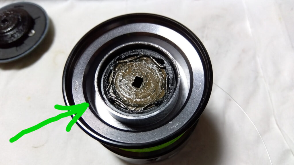 少なくともこのスプールの肉抜き穴よりも小さい異物は入り込む可能性がある(シャフトが傷つく確率が高い?)